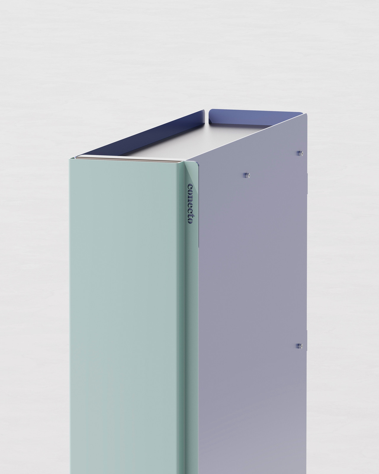 CONECTO 음료냉장고는 마치 모듈가구처럼 다양한 인테리어에 어울릴 수 있도록 빈티지한 컬러의 메탈플레이트로 디자인되었습니다. 트롤리 방식으로 동선에 따라 거실, 오피스, 주방 등 어디든 이동할 수 있습니다. 음료수납과 더불어 다양한 소품 거치가 가능한 상단 트레이를 통해 실용성을 높였습니다. CONECTO는 공간과 사람을 연결하는 새로운 개념의 모듈형 음료 냉장고입니다.