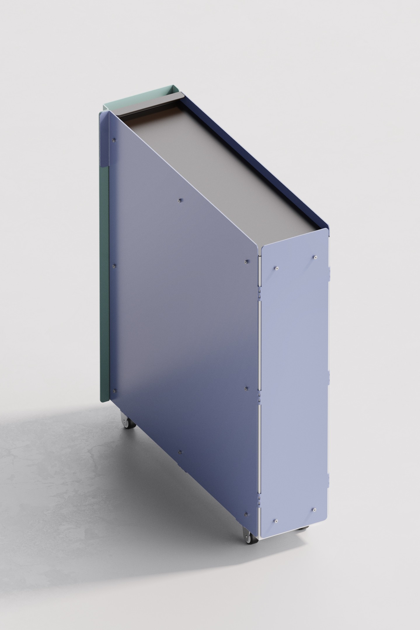 Made from folded metal sheets, its structure blends seamlessly with modular and metal furniture, while the vintage-inspired colors bring warmth and character to any environment. Over time, the finish develops a unique charm, making the refrigerator feel more like a timeless piece of furniture than a machine.
