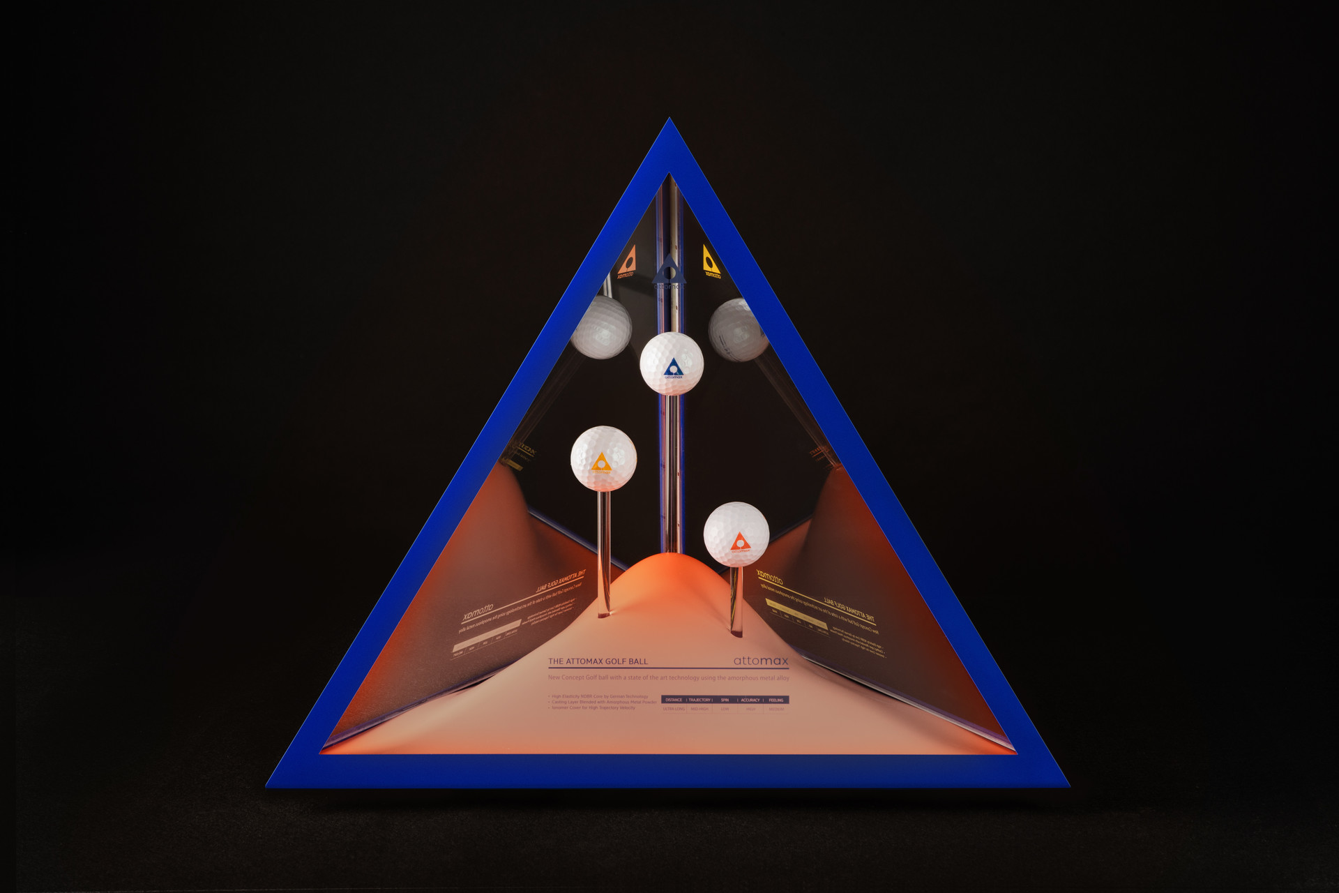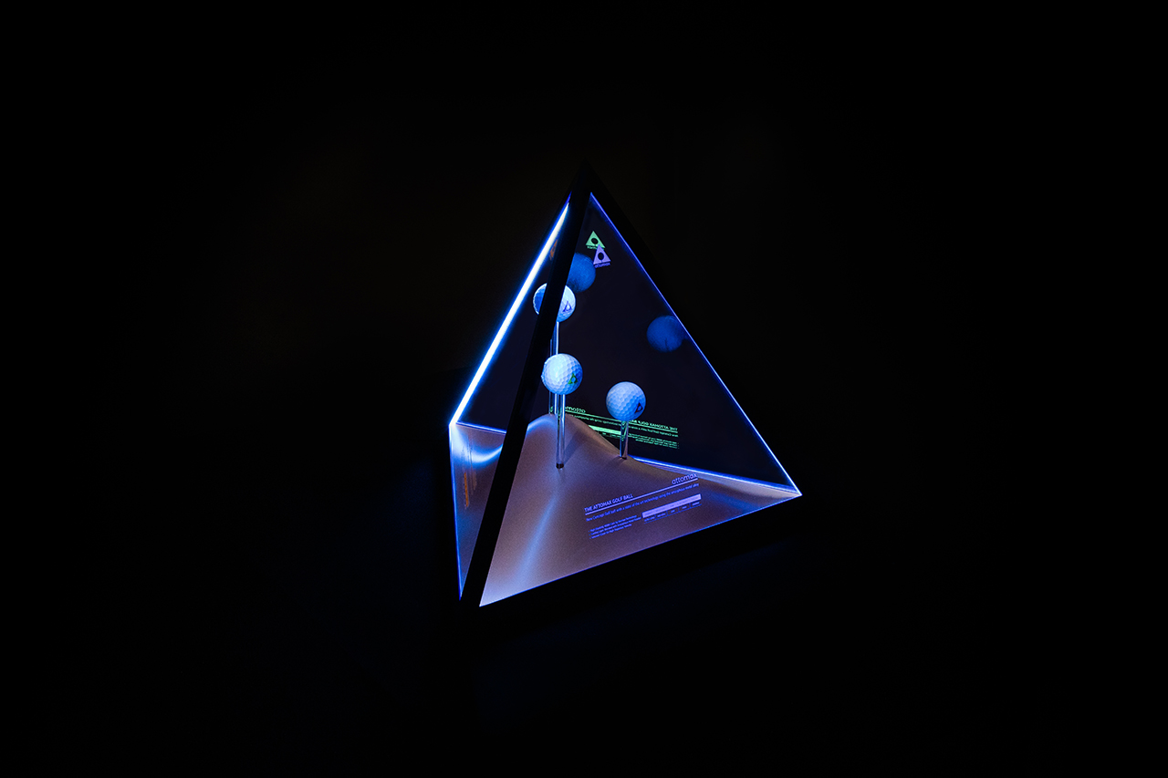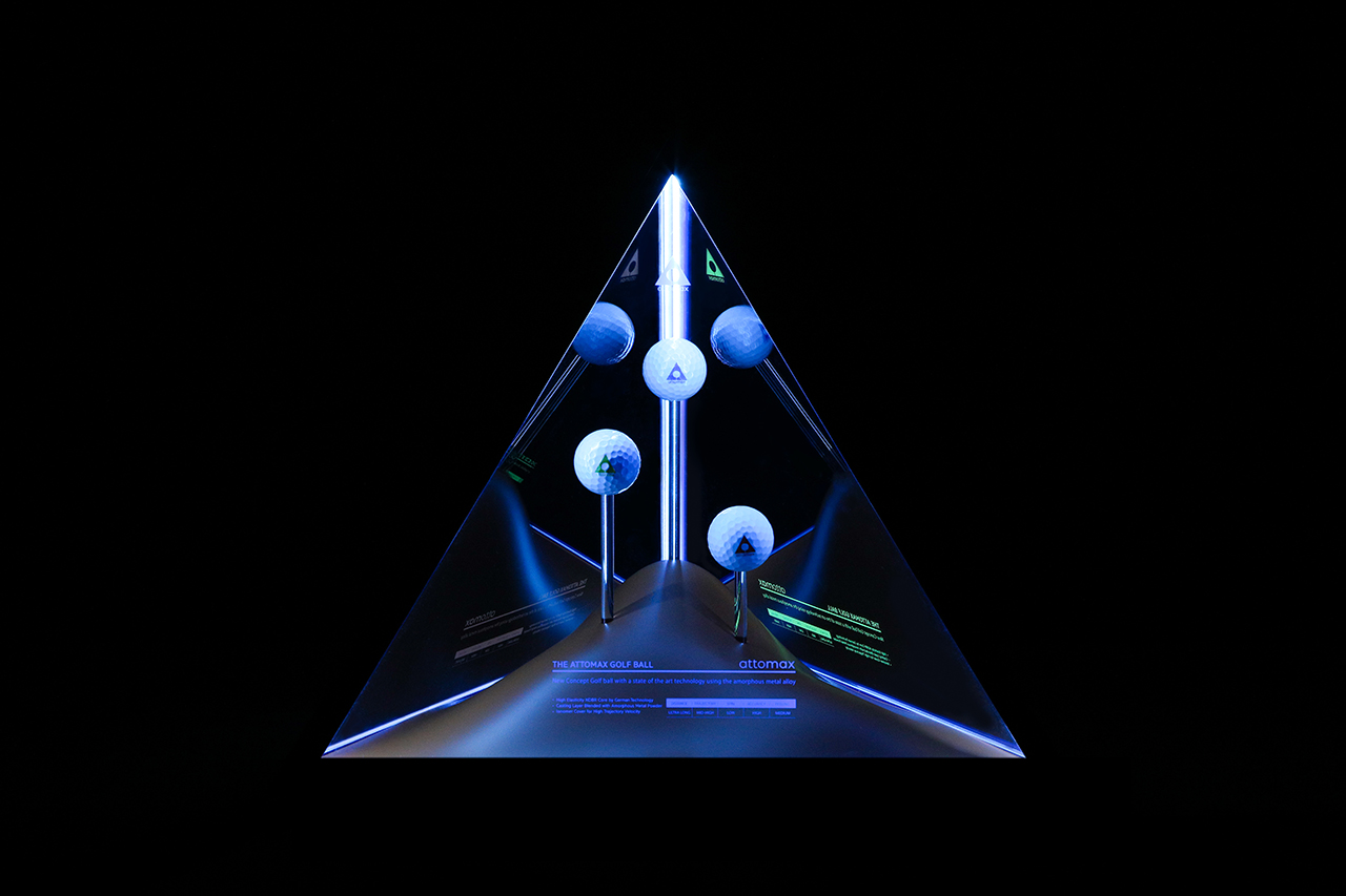 We've designed a kinetic display for Atomax, a premium golf ball made of amorphous alloy that dramatically increases distance. To capture Atomax's explosive performance, we've encased S, M, and H golf balls in a tetrahedral pyramid that embodies the Atomax logo in three dimensions. The three balls on display move vertically at regular intervals, captivating customers' attention and displaying them at Kolon stores nationwide.